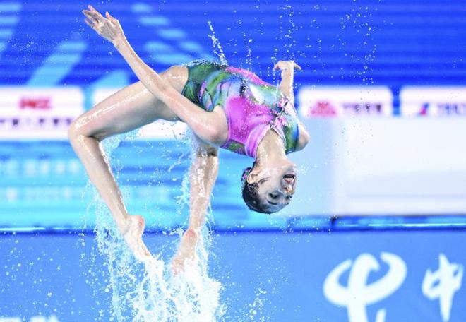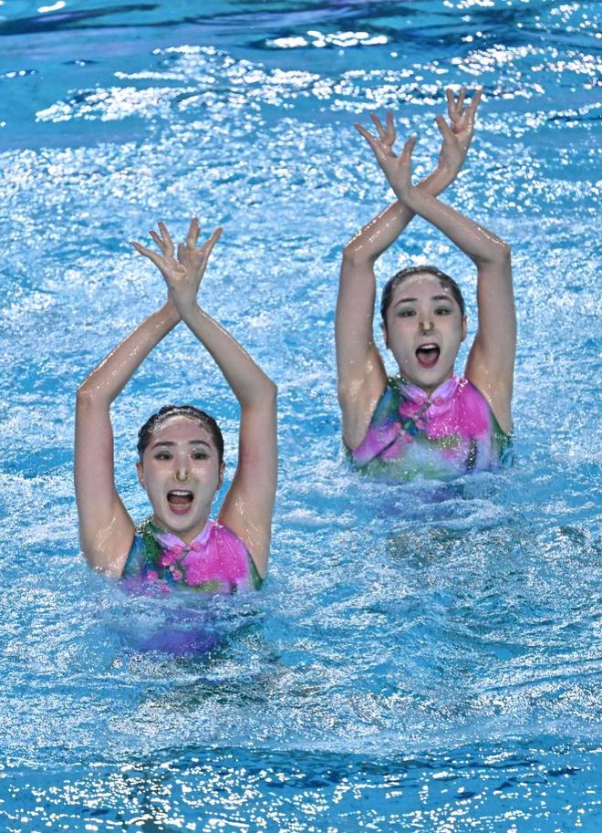 11月15日,广东队组合王柳懿/王芊懿在比赛中。新华社记者 陈钟昊 摄 本届全运会花样游泳女子双人项目由技术自选、自由自选两部分组成。在11月15日上午开展的技术自选项目赛事中,广东队选手王芊懿、王柳懿凭借曾在巴黎奥运会夺冠的经典作品《莲》斩获该项目头名,为冲击最终双人项目金牌奠定坚实基础。在晚上的自由自选项目赛事中,两人再度展现出奥运级水准,将力量与柔美融为一体,最终以领先第二名北京队25.1197分的绝对优势锁定金牌,为广东代表团再添荣耀。北京队、北京体育大学队分别以560.8621分、536.6096分获得亚、季军。