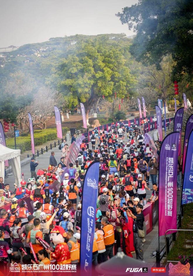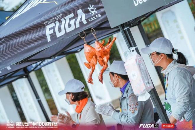 就很好坐! 结果大哥一坐真的起不来了,他说膝盖很不舒服,立刻分享了我的”神药“——花红消肿止痛町,当年崇礼168用过一次就再也离不开,缓解疼痛酸胀超级有效。 休息过后,继续出发。这段路很多人都因体力放慢速度,我也遇到几个同速的跑友,聊赛道、聊补给、互相安利有意思的赛事。 山里静,风景好,遇见合拍的人,也有力气说说话。不用盯着手机等谁的消息,活着变成了一件很简单的事情,有吃有喝就足够了。 说到吃,广州一百补给站的食物真的值得夸。样式多,量也足,香蕉、橘子、坚果、罐头、可乐、电解质水、热粥、粉、马拉糕……