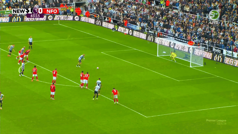 新晋纽卡斯尔头号球星沃尔特马德一记“百万播放”的点球引爆全网 在10月5日晚进行的2025/26赛季英超联赛第7轮比赛中,纽卡斯尔联队以2比0击败诺丁汉森林。比赛第84分钟,布鲁诺·吉马良斯在禁区内被犯规,纽卡斯尔获得点球机会。此时,全场焦点落在了新援尼克·沃尔特马德身上。 只见他缓缓助跑,节奏近乎打破常规,随后猛然发力,一脚势大力沉的射门如雷霆般直挂球门死角,皮球狠狠砸入球网顶端,现场五万多名圣詹姆斯公园球场的球迷瞬间沸腾,惊呼声此起彼伏。 这记力量、精度与胆识兼具的点球,连对方门将也毫无反应余地。进球瞬间,社交媒体X平台迅速被这段视频刷屏,短短数小时内播放量便突破百万,成为足坛热议焦点。 有球迷留言赞叹:“尼克·沃尔特马德——这粒点球堪称英超历史最佳!” 另一名网友评论道:“难以置信,这一脚既诡异又完美。”