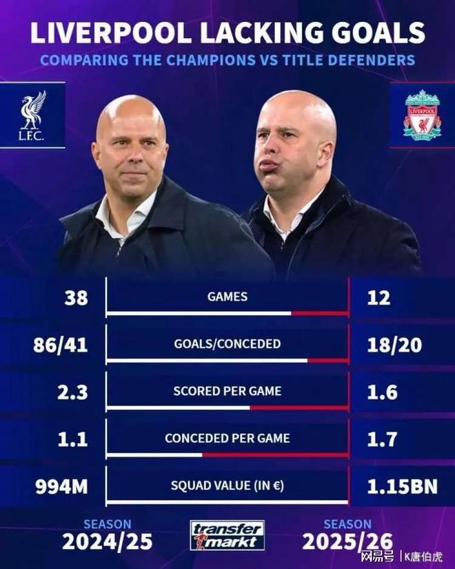 那么,伯虎的观点是这正是这支球队已经在进行的升级,倘若控球无效的话,那为何上赛季的英超冠军会如愿收入囊中?仅仅是在吃渣叔留下的那些老本? 12轮比赛输掉了6场,其中失球更是高达20个,而进球只有18个。核心问题不只在于前锋球员的进球能力,对比排名榜首的阿森纳来看,枪手也只打进了20个进球,但是失球数则仅为5个。 也因此,后防线的问题是当下亟待修复的难题,范戴克的话很有意思:“我们确实让主教练失望了,我们也让自己失望了。”