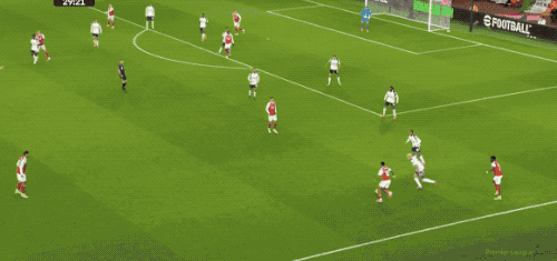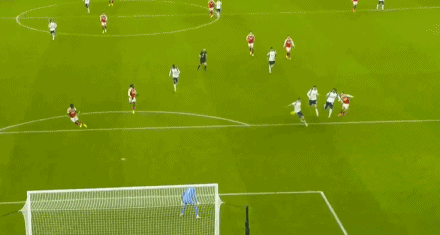 第76分钟,梅里诺送出妙传,特罗萨德无私横敲,埃泽停球摆脱一气呵成,随后兜射命中,大演帽子戏法,阿森纳锁定胜局,4-1!